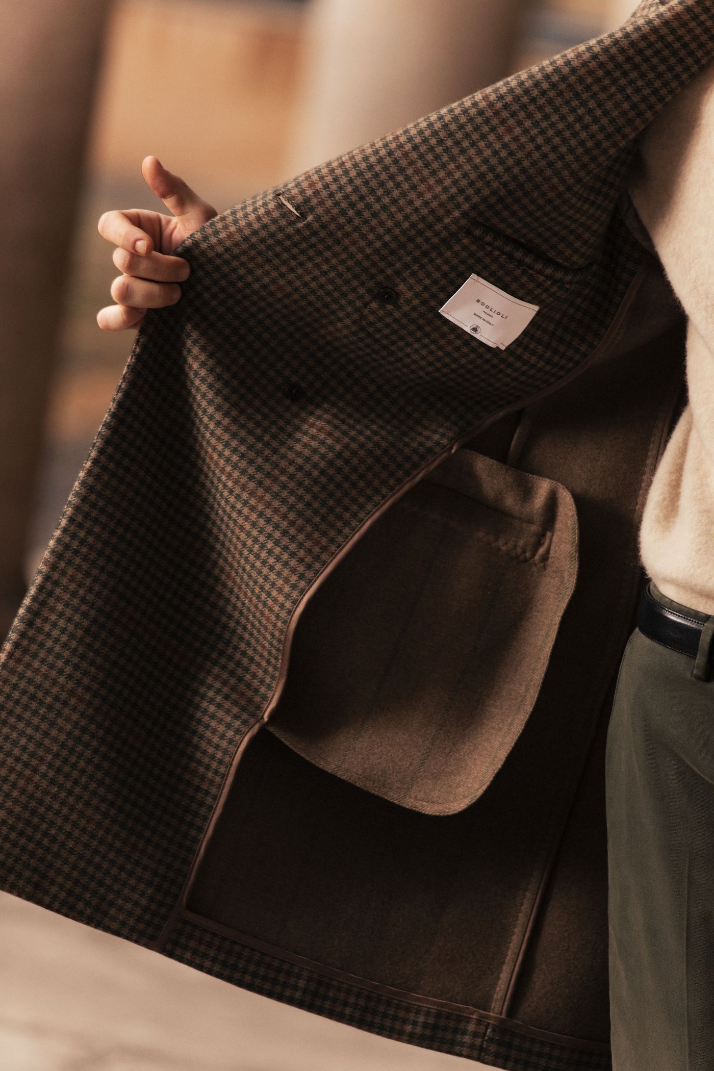Boglioli, rinomata per la sua maestria artigianale, realizza ogni singolo capo concura e attenzione. Lo si può notare, ad esempio, dall’estrema precisione di ogni cucitura, dalle rifiniture di alta qualità e dalla minuziosa scelta di tessuti pregiati. Questa perfezione sartoriale si traduce in abiti, in particolare nelle giacche, che una volta indossati calzano come una seconda pelle, offrendo comfort ed eleganza senza il bisogno di dover scendere a compromessi.